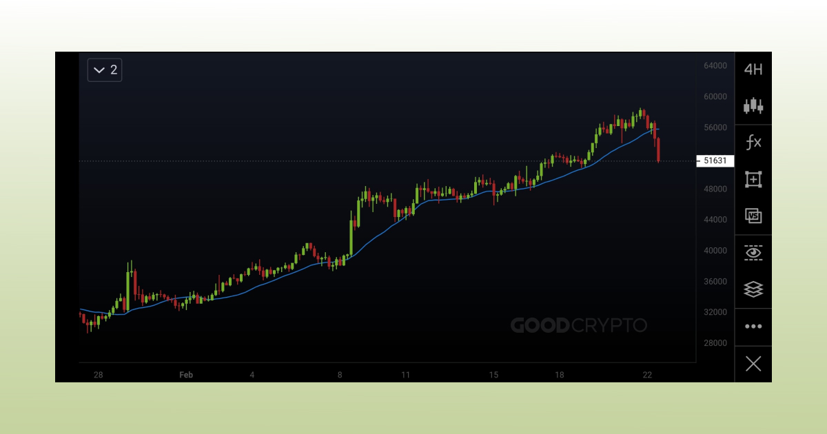 A 20 SMA on the 4H chart of BTC/USD